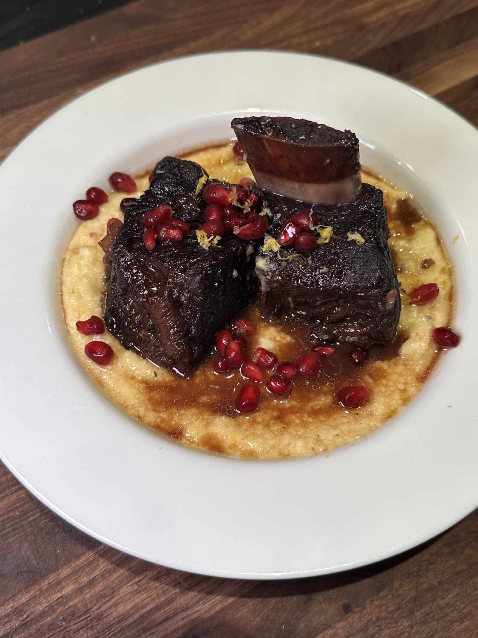 Pomegranate Short Ribs w/ Parmigiano Polenta